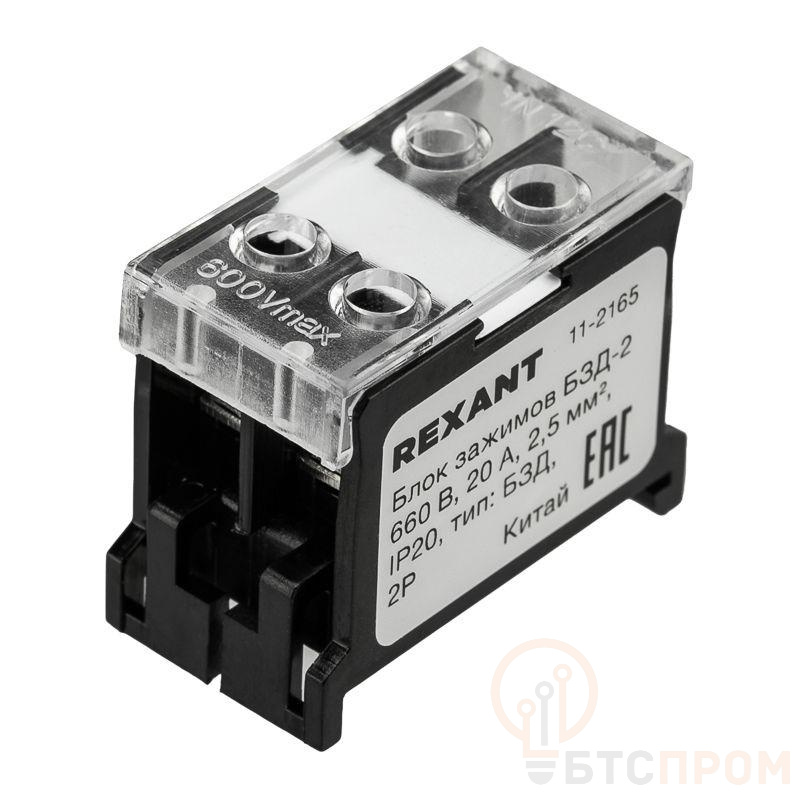 Блок зажимов клеммный БЗД 2п 2.5кв.мм 20А на DIN-рейку Rexant 11-2165 фото в каталоге от BTSprom.by