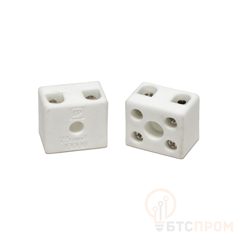 Клемма керамическая латунь 2.5кв.мм 2 пары контактов с крепежным отверстием (уп.5шт) Промрукав PR08.7162