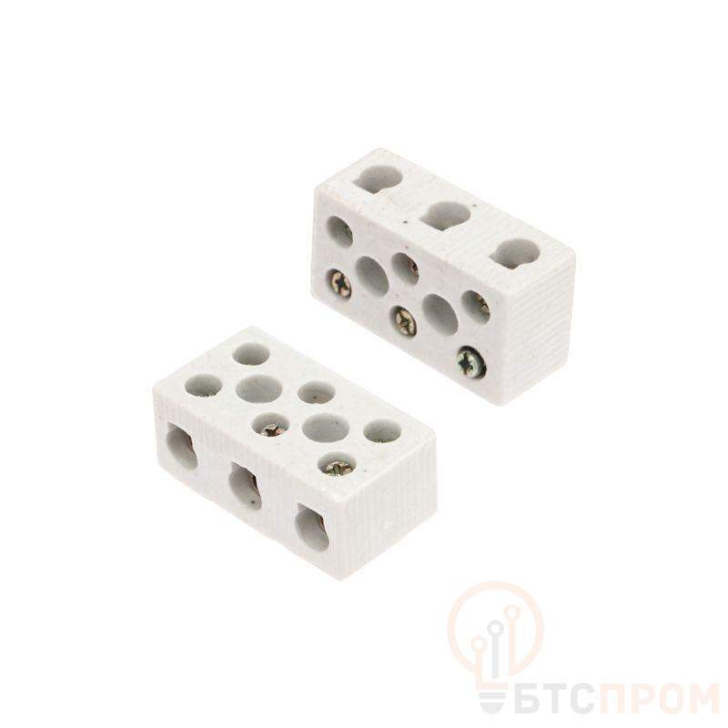 Клемма керамическая винтовая 12кв.мм 3 пары контактов с крепежным отверстием (уп.45шт) Rexant 07-6227