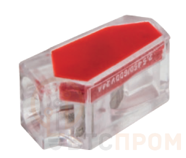 Клемма имеет компактный корпус из самозатухающего нейлона, устойчивого к воздействию высоких температур и распространению пламени. Прозрачная конструкция корпуса позволяет визуально контролировать правильность ввода жилы. Для подключения используется надежный зажим пружинного типа, который обеспечивает постоянное давление на провод и отличный токопроводящий контакт.