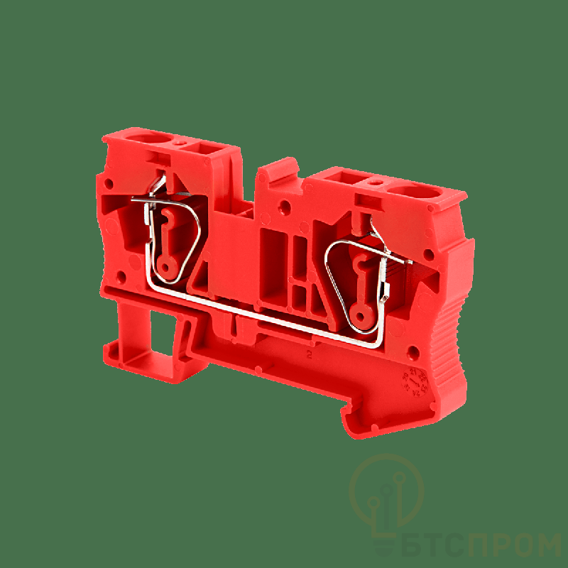 Клемма пружинная проходная MTS-6RD от компании ОВЕН предназначена для надежного и быстрого соединения проводов сечением до 6 мм² в электрощитовом оборудовании. Изделие имеет красный цвет корпуса, что удобно для цветовой маркировки цепей. Основной особенностью данной клеммы является проходная конструкция, позволяющая подключать два проводника с разных сторон, создавая разрыв цепи для удобства измерений или организации ответвлений.