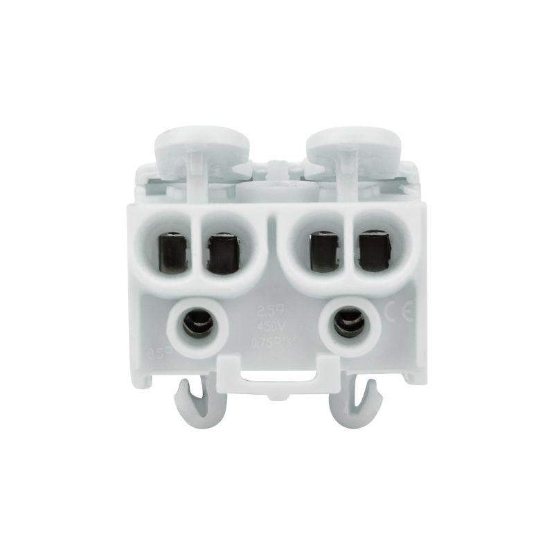 Пружинные двухполюсные клеммы с монтажными ножками REXANT предназначены для присоединения и ответвления одножильных и многожильных медных проводников в электрических цепях переменного тока напряжением до 450 В. Наличие маркировки («фаза», «ноль», «земля») на подвижной части зажима, наличие монтажной ножки. Материал корпуса – самозатухающий ПВХ, материал контакта – электротехническая сталь. 1. Сечение многожильного провода -0,5х2,5мм2 2. Номинальный ток - 16А 3.Номинальное рабочее напряжение - 450В 4.Тип соединения - фиксатор/защелка 5. Количество полюсов - 2. 6. Наличие маркировки («фаза», «ноль», «земля») на подвижной части зажима. 7. Температурный диапазон в режиме эксплуатации: -60... +40 ?