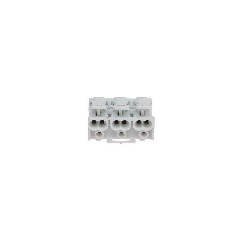 Пружинные трехполюсные клеммы REXANT предназначены для присоединения и ответвления одножильных и многожильных медных проводников в электрических цепях переменного тока напряжением до 450 В. Наличие маркировки («фаза», «ноль», «земля») на подвижной части зажима. Материал корпуса – самозатухающий ПВХ, материал контакта – электротехническая сталь. 1. Сечение многожильного провода -0,5х2,5мм2 2. Номинальный ток - 16А 3.Номинальное рабочее напряжение - 450В 4.Тип соединения - фиксатор/защелка 5. Количество полюсов - 3. 6. Наличие маркировки («фаза», «ноль», «земля») на подвижной части зажима. 7. Температурный диапазон в режиме эксплуатации: -60... +40 ?