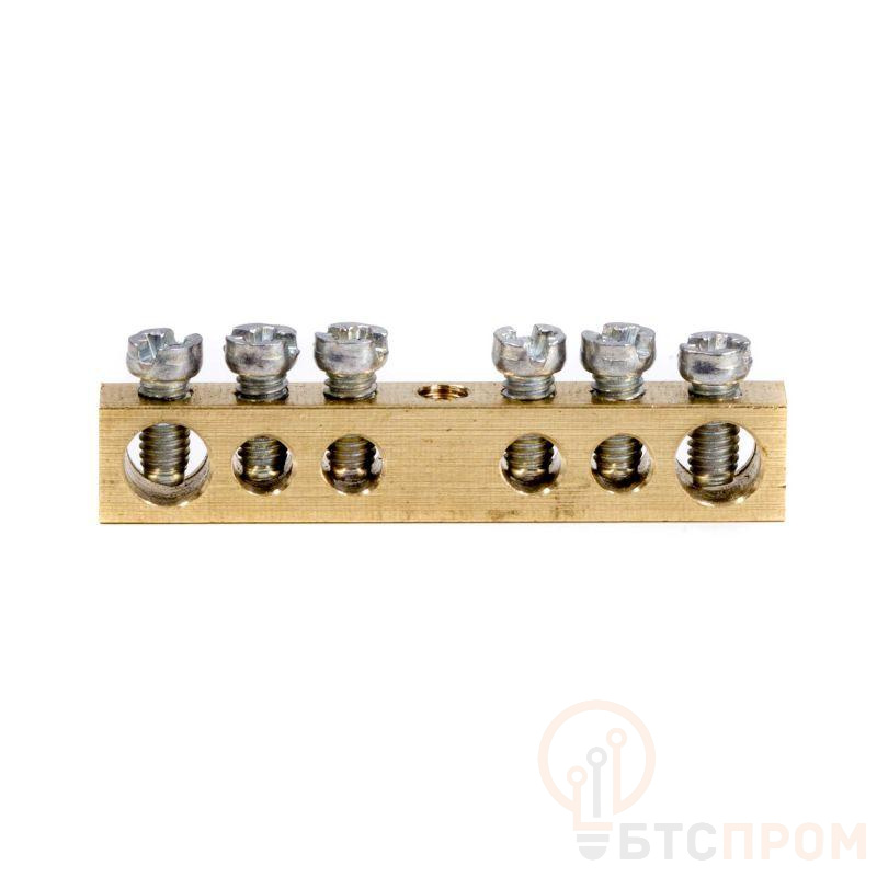 Шина применяется для коммутации кабелей, проводов, питающих жил. Расчитана на работу с токами до 63 А. Крепление шины по центру. Шина имеет 6 отверстий для коммутации. 2 отверстия сечением 6 мм2, 4 отверстия сечением 4 мм2.