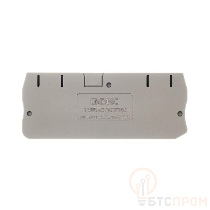 Изолятор торцевой предназначен для защиты и закрытия токоведущие части клеммы. Фиксируется на клеммах с Push-in зажимом VPR-2.5-QUATTRO. Устанавливается в конце клеммного ряда и также может использоваться для визуального разделения сегментов клеммного ряда. Серый цвет, толщина 2,2 мм.