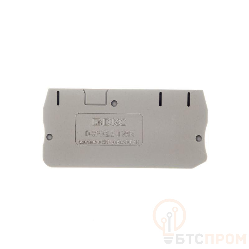 Изолятор торцевой предназначен для защиты и закрытия токоведущие части клеммы. Фиксируется на клеммах с Push-in зажимом VPR-2.5-TWIN. Устанавливается в конце клеммного ряда и также может использоваться для визуального разделения сегментов клеммного ряда. Серый цвет, толщина 2,2 мм.