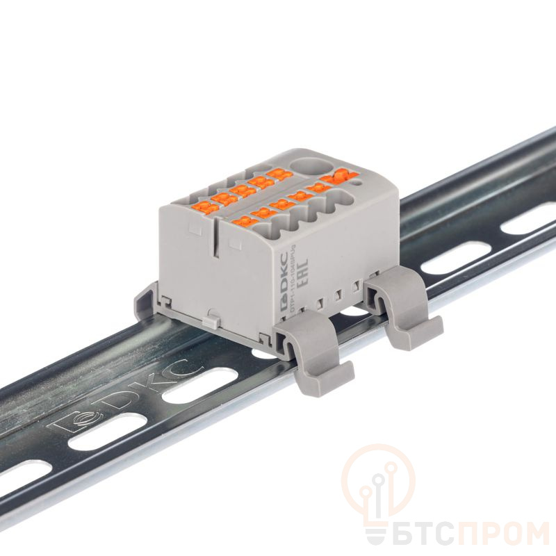 Блок распределительный с горизонт. адаптером на рейку шир. 35мм зажим push-in 1 ввод 6кв.мм 10 точек подключения 2.5кв.мм сер. DKC DTP1-110-104SPUG-H