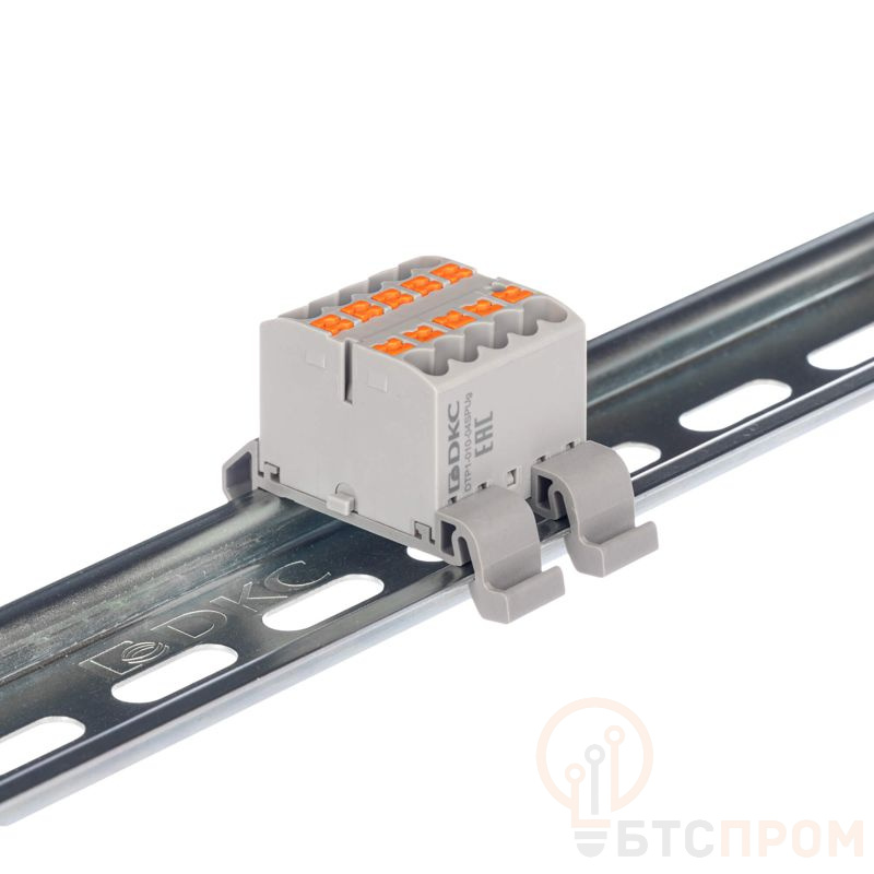 Блок распределительный с горизонт. адаптером на рейку шир. 35мм зажим push-in 10 точек подключения 2.5кв.мм сер. DKC DTP1-010-04SPUG-H