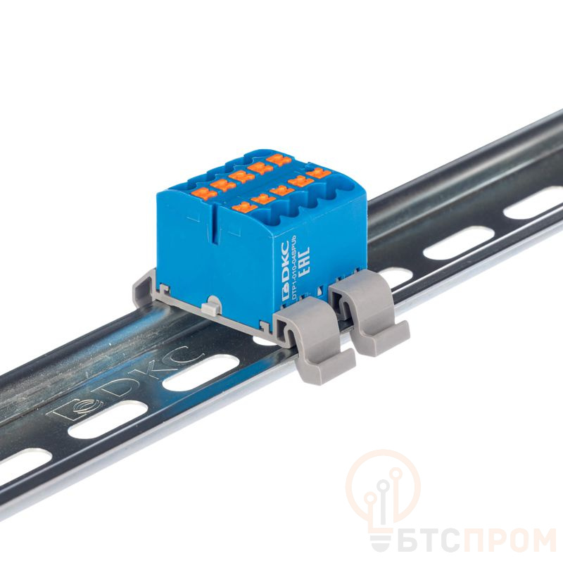 Блок распределительный с горизонт. адаптером на рейку шир. 35мм зажим push-in 10 точек подключения 2.5кв.мм син. DKC DTP1-010-04SPUB-H