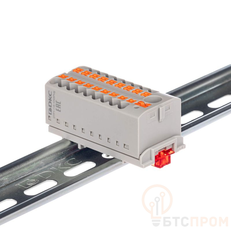 Блок распределительный с вертикал. адаптером на рейки шир. 15/35мм зажим push-in 1 ввод 6кв.мм 18 точек подключения 2.5кв.мм сер. DKC DTP1-118-104SPUG-V