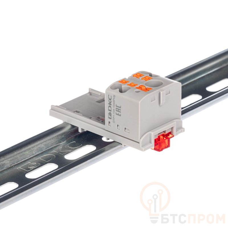 Блок распределительный с вертикал. адаптером на рейки шир. 15/35мм зажим push-in 1 ввод 6кв.мм 4 точки подключения 2.5кв.мм сер. DKC DTP1-104-104SPUG-V