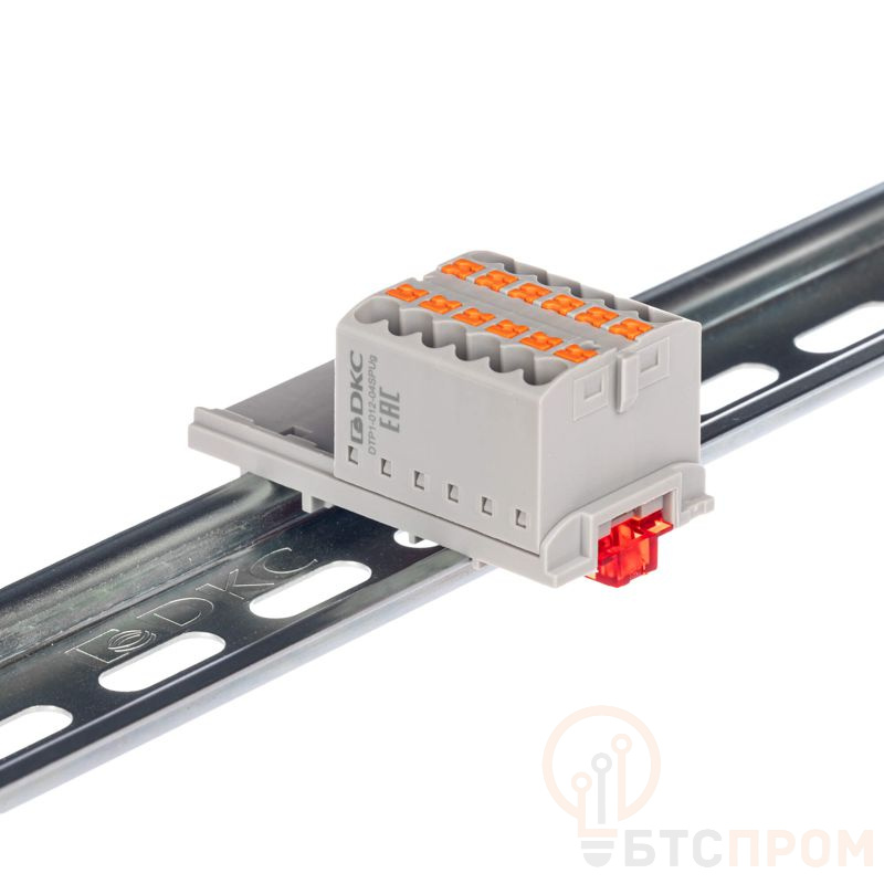 Блок распределительный с вертикал. адаптером на рейки шир. 15/35мм зажим push-in 12 точек подключения 2.5кв.мм сер. DKC DTP1-012-04SPUG-V