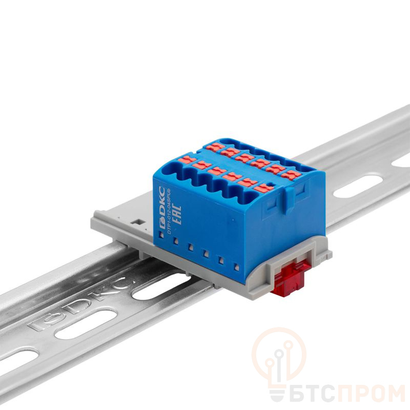 Блок распределительный с вертикал. адаптером на рейки шир. 15/35мм зажим push-in 12 точек подключения 2.5кв.мм син. DKC DTP1-012-04SPUB-V