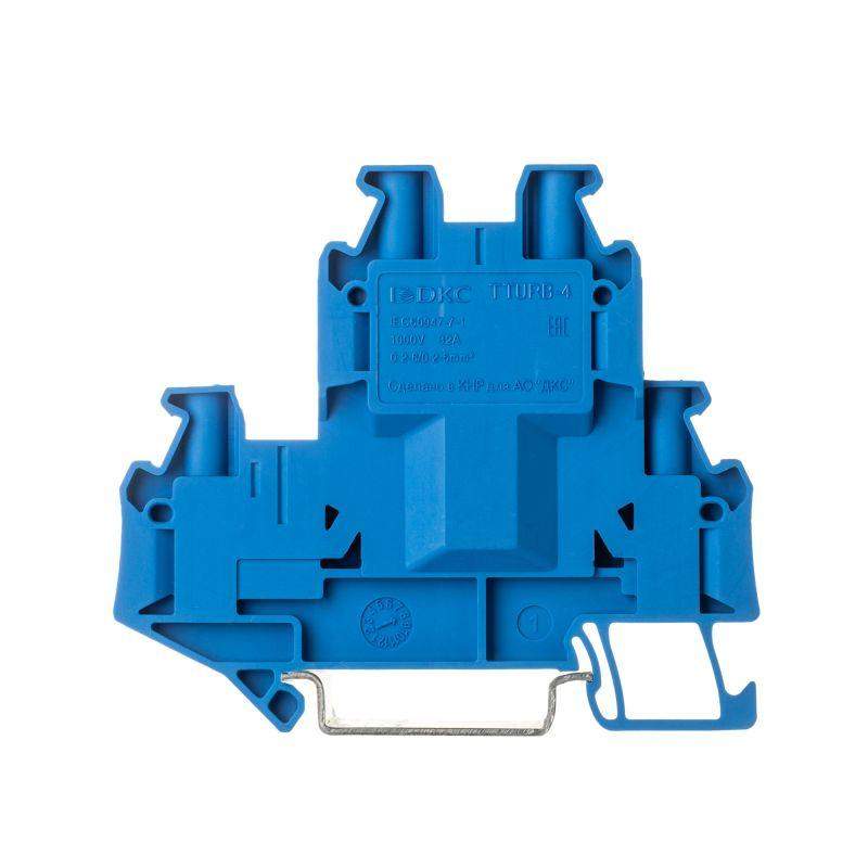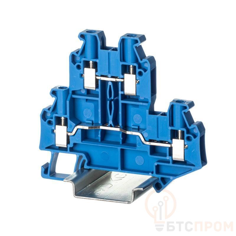 Клемма двухуровневая с винтовым зажимом предназначена для соединения четырех проводников. Монтаж на DIN-рейку OMEGA. Температура эксплуатации от -40 до +105°C. Корпус выполнен из ПА 6.6 с классом горючести V0 UL-94. Синий цвет, 4 точки подключения, 4 мм2. 2 канала для вставных перемычек на каждом уровне. Габариты (В?Ш?Г) 66?73,5?6,2 мм.