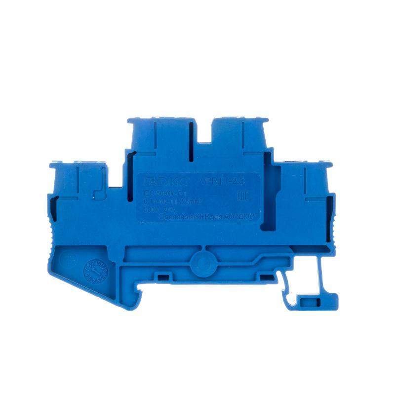 Клемма двухуровневая с Push-in зажимом предназначена для соединения четырех проводников, а за счет кнопки-толкателя обеспечивается защита от ошибок при монтаже и случайного прикосновения. Монтаж осуществляется на DIN-рейку OMEGA. Температура эксплуатации от -40 до +105оС. Корпус выполнен из ПА 6.6 с классом горючести V0 UL-94. Синий цвет, 4 точки подключения, 2.5 мм2. Вставные перемычки. Габариты (В?Ш?Г) 47,6?68,9?5,2 мм.
