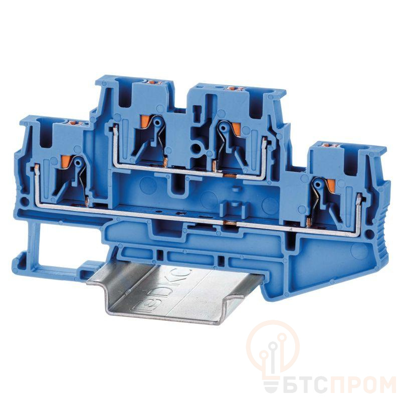 Клемма двухуровневая с Push-in зажимом предназначена для соединения четырех проводников, а за счет кнопки- толкателя обеспечивается защита от ошибок при монтаже и случайного прикосновения. Монтаж осуществляется на DIN-рейку OMEGA. Температура эксплуатации от -40 до +105°C. Корпус выполнен из ПА 6.6 с классом горючести V0 UL-94. Синий цвет, 4 точки подключения, 4 мм2. Вставные перемычки. Габариты (В?Ш?Г) 47,6?83,7?6,2 мм.