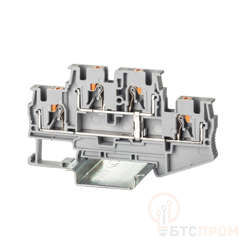 Клемма двухуровневая зажим push-in 4 точки подключения с перемычкой между уровнями 4кв.мм сер. DKC VPRTT-4-PV-GY