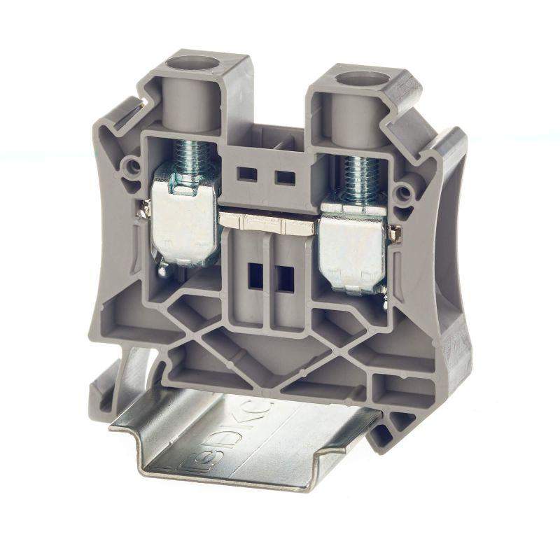 Проходная клемма с винтовым зажимом предназначена для соединения двух проводников. Монтаж на DIN-рейку OMEGA. Температура эксплуатации от -40 до +105°C. Корпус выполнен из ПА 6.6 с классом горючести V0 UL-94. Серый цвет, 2 точки подключения, 16 мм2. 2 канала для вставных перемычек. Габариты (В?Ш?Г) 55?55,3?12 мм.