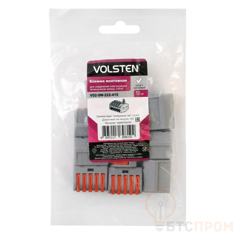 Клемма строительно-монтажная СМК 5 пр. до 4мм 32А 450 В 10шт V02-9W-222-415 сер. Volsten 15221 фото в каталоге от BTSprom.by