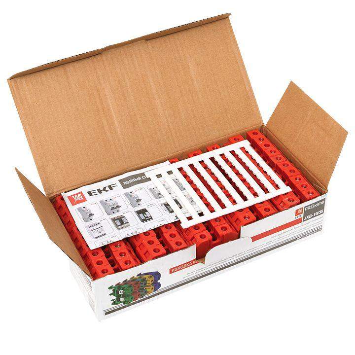 Колодки клеммные JXB EKF PROxima и EK-JXB (земля) устанавливаются на DIN-рейку в распределительных щитах для надежного и удобного подключения проводников различных сечений и разного назначения. Зажим проводника осуществляется винтом. Рассчитаны на применение в цепях переменного тока с частотой 50 Гц. Изготовлены из цветного пожаростойкого полиамида. ГОСТ Р 50030.7.2002