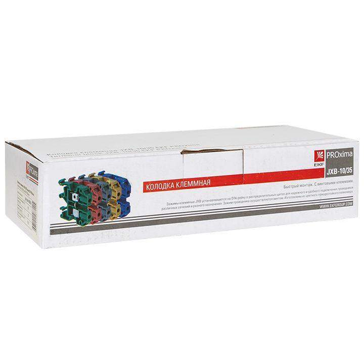 Колодки клеммные JXB EKF PROxima и EK-JXB (земля) устанавливаются на DIN-рейку в распределительных щитах для надежного и удобного подключения проводников различных сечений и разного назначения. Зажим проводника осуществляется винтом. Рассчитаны на применение в цепях переменного тока с частотой 50 Гц. Изготовлены из цветного пожаростойкого полиамида. ГОСТ Р 50030.7.2002