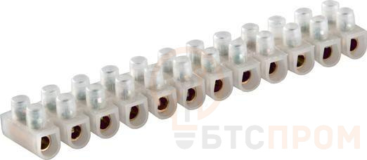 Для винтового соединения проводников между собой. При этом образуется надежное электрическое соединение, которое защищено диэлектрическим материалом, стойким к высоким температурам. Зажим контактный винтовой, 12 секций, материал - PE, ток нагрузки 15A, до 250В, сечение 4,0-10мм2, цвет - белый