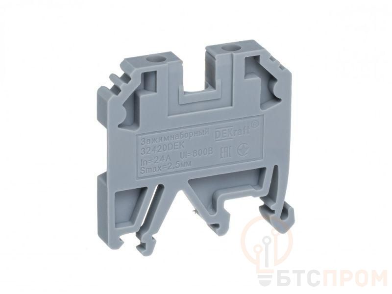 Зажим наборный серии ЗН-101 Dekraft ; номинальный ток - 24 А; сечение проводов от 1 до 2,5 кв.мм; цвет – серый; материал корпуса - полиамид; материал клемм и винтов – латунь; монтаж - защелкиванием на DIN-рейку; количество в упаковке – 50 шт. Клемма выполнена таким образом, что обеспечивает двойной обжим проводника. Это обеспечивается в том числе и за счет насечек на клеммах. Флажок под зажимом предотвращает случайную установку проводника ниже зажима.