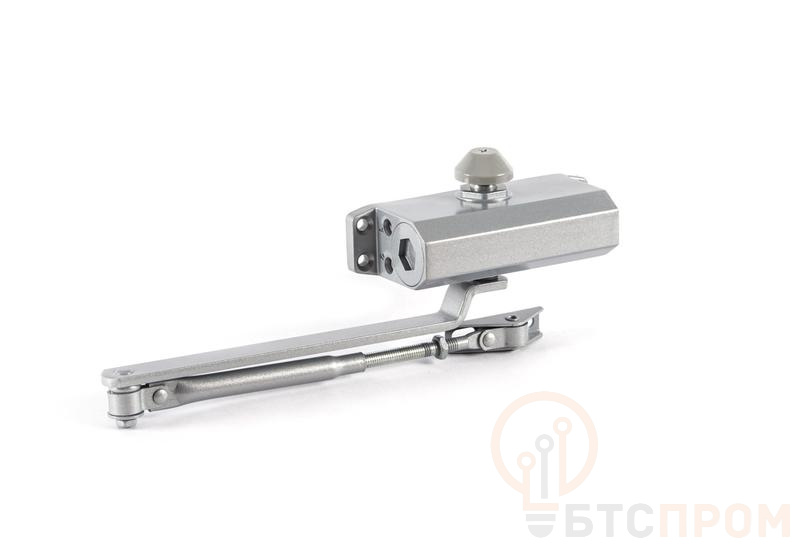 Дверной доводчик. Для дверей весом до 50 кг, шириной 780–850 мм. Усилие EN2. Две скорости работы. Диапазон рабочих температур — от -35 до +50°C. Габаритные размеры — 146х58х38 мм, масса — 0,96 кг. Цвет — серый.