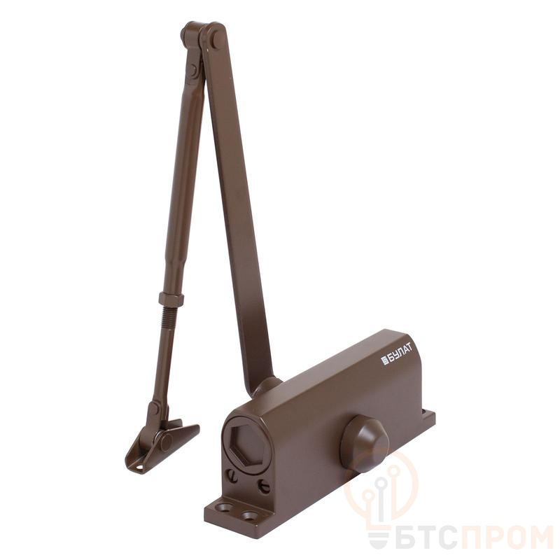 БУЛАТ Доводчик дверной ULTIMATE ДД-120 A-C (60-140 кг) коричневый, морозостойкий(10), , Дверные доводчики «БУЛАТ», предназначены для плавного, автоматического закрытия двери. Подходит для большинства пластиковых, деревянных и металлических дверей. Устанавливаются в квартирах, офисах, промышленных и других помещениях. Функции: регулируемая скорость закрывания двери, регулируемая скорость окончательной доводки, АНТИВАНДАЛЬНЫЙ КЛАПАН. Модель подходит для дверей весом до 140 кг. Температурный режим работы от -42 до +50 градусов. Комплект поставки Дверной доводчик Рычаг с винтовым соединением колена Крепеж Инструкция по монтажу и эксплуатации, совмещенная с паспортом изделия Шаблон для установки.