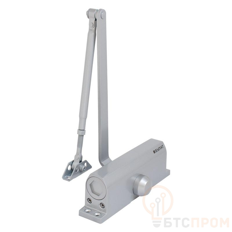 БУЛАТ Доводчик дверной ULTIMATE ДД-150 A-S (80-160 кг) серебро, морозостойкий(10), Дверные доводчики «БУЛАТ», предназначены для плавного, автоматического закрытия двери. Подходит для большинства пластиковых, деревянных и металлических дверей. Устанавливаются в квартирах, офисах, промышленных и других помещениях. Функции: регулируемая скорость закрывания двери, регулируемая скорость окончательной доводки, АНТИВАНДАЛЬНЫЙ КЛАПАН. Модель подходит для дверей весом до 160 кг. Температурный режим работы от -42 до +50 градусов. Комплект поставки Дверной доводчик Рычаг с винтовым соединением колена Крепеж Инструкция по монтажу и эксплуатации, совмещенная с паспортом изделия Шаблон для установки.