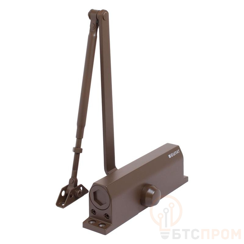 БУЛАТ Доводчик дверной ULTIMATE ДД-180 A-C (110-180 кг) коричневый, морозостойкий(10), , Дверные доводчики «БУЛАТ», предназначены для плавного, автоматического закрытия двери. Подходит для большинства пластиковых, деревянных и металлических дверей. Устанавливаются в квартирах, офисах, промышленных и других помещениях. Функции: регулируемая скорость закрывания двери, регулируемая скорость окончательной доводки, АНТИВАНДАЛЬНЫЙ КЛАПАН. Модель подходит для дверей весом до 180 кг. Температурный режим работы от -42 до +50 градусов. Комплект поставки Дверной доводчик Рычаг с винтовым соединением колена Крепеж Инструкция по монтажу и эксплуатации, совмещенная с паспортом изделия Шаблон для установки.