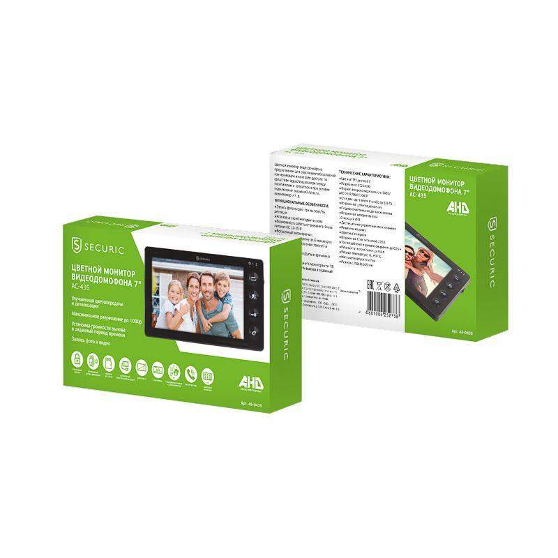 Монитор видеодомофона цветной 7дюйм формата AHD(1080P) с детектором движения функцией фото- и видеозаписи (модель AC-435) черн. Rexant 45-0435
