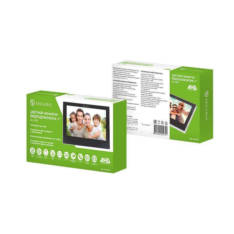 Монитор видеодомофона цветной 7дюйм формата AHD(1080P) с сенсорным экраном детектором движения функцией фото- и видеозаписи (модель AC-438) Rexant 45-0438