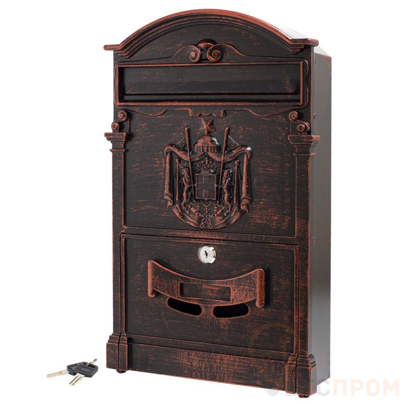 Ящик почтовый индивидуальный. Материал - сталь, алюминий. Цвет - старая медь. Размеры - 405*255*75мм. Замок с 2 ключами.