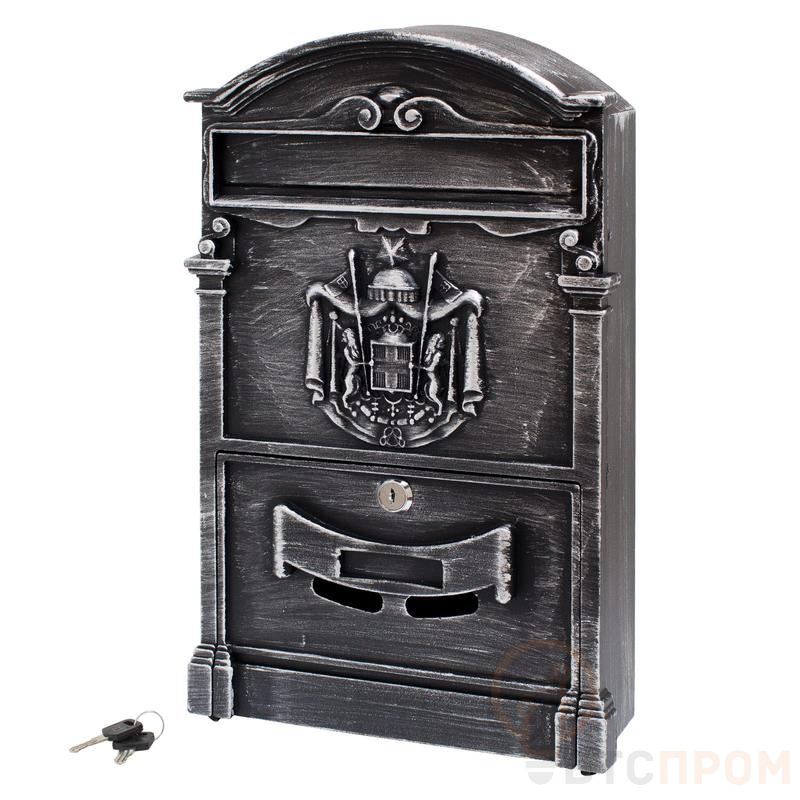 Ящик почтовый индивидуальный. Материал - сталь, алюминий. Цвет - старое серебро. Размеры - 405*255*75мм. Замок с 2 ключами.