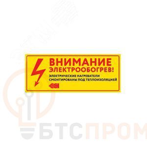 Изготовлена на самоклеящейся основе. Наносится на поверхности объектов где установлена система кабельного электрообогрева, с целью предупреждения людей об опасности поражением электрическим током. Перед приклеиванием этикетки, поверхность должна быть очищена от грязи и обезжирена специально предназначенным для таких целей составом. Наклейка выполнена из материала стойкого к негативному воздействию внешней среды. Габаритные размеры, мм 145х55х1