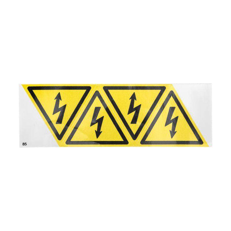 Знак электробезопасности (наклейка) «Опасность поражения электротоком» – это информационный знак, который сообщает об опасности поражения электрическим током. Предназначен для размещения на электрооборудовании, приборах, опорах линий электропередачи, дверцах силовых щитков, электротехнических панелях и шкафах, а также на ограждениях токоведущих частей оборудования, механизмов и приборов. Наклейка используется для предупреждения и информирования окружающих, а также для организации мест работы электромонтажных бригад. Наносится на ровную сухую поверхность. Изделие изготовлено на основе самоклеящейся пленки, разработанной специально для использования на информационных знаках как внутри помещений, так и на улице. Комплект набора: наклейки размером 85х85х85 мм (по 4 наклейки на 1 листе).