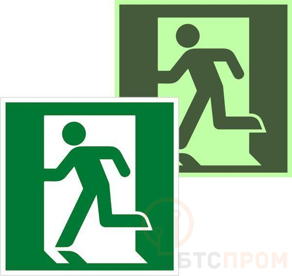 Знак эвакуационный E 01-01 "Выход здесь" (левосторонний) 200х200мм металл с покрытием фотолюминесцентным EKF zn-e-01-01-f