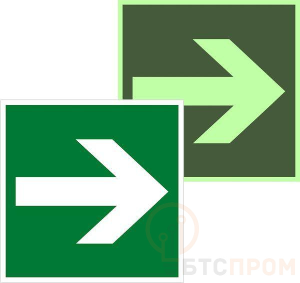 Знак эвакуационный E 02-01 "Направляющая стрелка" 200х200мм пластик с покрытием фотолюминесцентным EKF pn-e-02-01-f