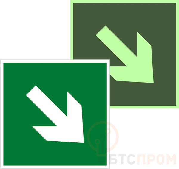 Знак эвакуационный E 02-02 "Направляющая стрелка под углом 45" 200х200мм пластик с покрытием фотолюминесцентным EKF pn-e-02-02-f