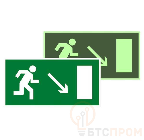 Знак эвакуационный E 07 "Направление к эвакуационному выходу направо вниз" 150х300мм пластик с покрытием фотолюминесцентным EKF pn-e-07-f