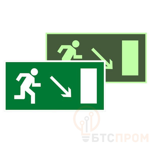 Знак эвакуационный E 07 "Направление к эвакуационному выходу направо вниз" 150х300мм пленка самоклеящаяся с фотолюминесцентным покрытием EKF an-e-07-f