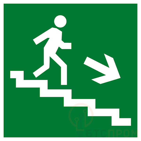 Знак эвакуационный E 13 "Направление к эвакуационному выходу по лестнице вниз направо" 200х200мм пленка самоклеящаяся EKF an-e-13