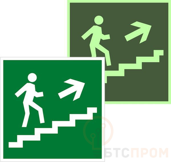 Знак эвакуационный E 15 "Направление к эвакуационному выходу по лестнице вверх" 200х200мм пленка самоклеящаяся с фотолюминесцентным покрытием EKF an-e-15-f