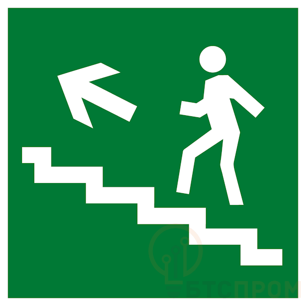 Знак эвакуационный E 16 "Направление к эвакуационному выходу по лестнице вверх" 200х200мм пластик EKF pn-e-16