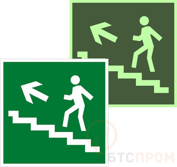 Знак эвакуационный E 16 "Направление к эвакуационному выходу по лестнице вверх" 200х200мм пленка самоклеящаяся с фотолюминесцентным покрытием EKF an-e-16-f