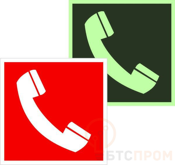 Знак F 05 "Телефон для использования при пожаре" (в том числе телефон прямой связи с пожарной охраной) 200х200мм пленка самоклеящаяся с покрытием фотолюминесцентным EKF an-f-05-f