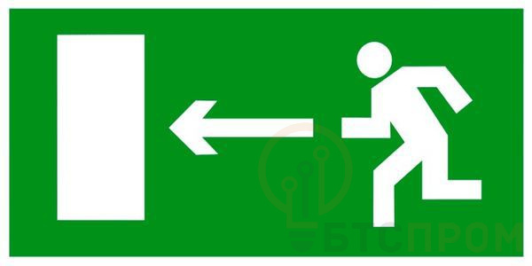 Эвакуационный знак - "Направление к эвакуационному выходу налево" служит для обозначения направления движения к выходам. Знак устанавливается на путях эвакуации. Выполнен из самоклеящиеся полимерной пленки, имеет размер 150х300 мм.