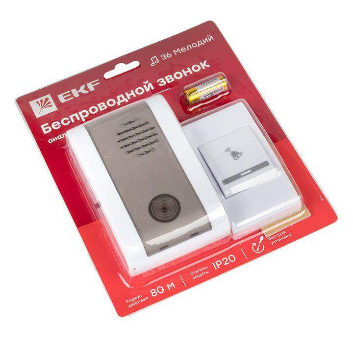 Звонок беспроводной 36 мелод. 80м с индик. на батарейках 003 2х1.5В АA бел.-сер. Basic EKF DBB-A-003