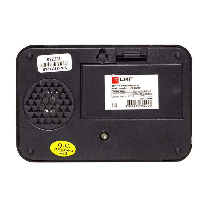 Звонок беспроводной 51 мелод. с индик. 4 уровня на батарейках 2х1.5В АА черн. Classic EKF DBB-D-003B